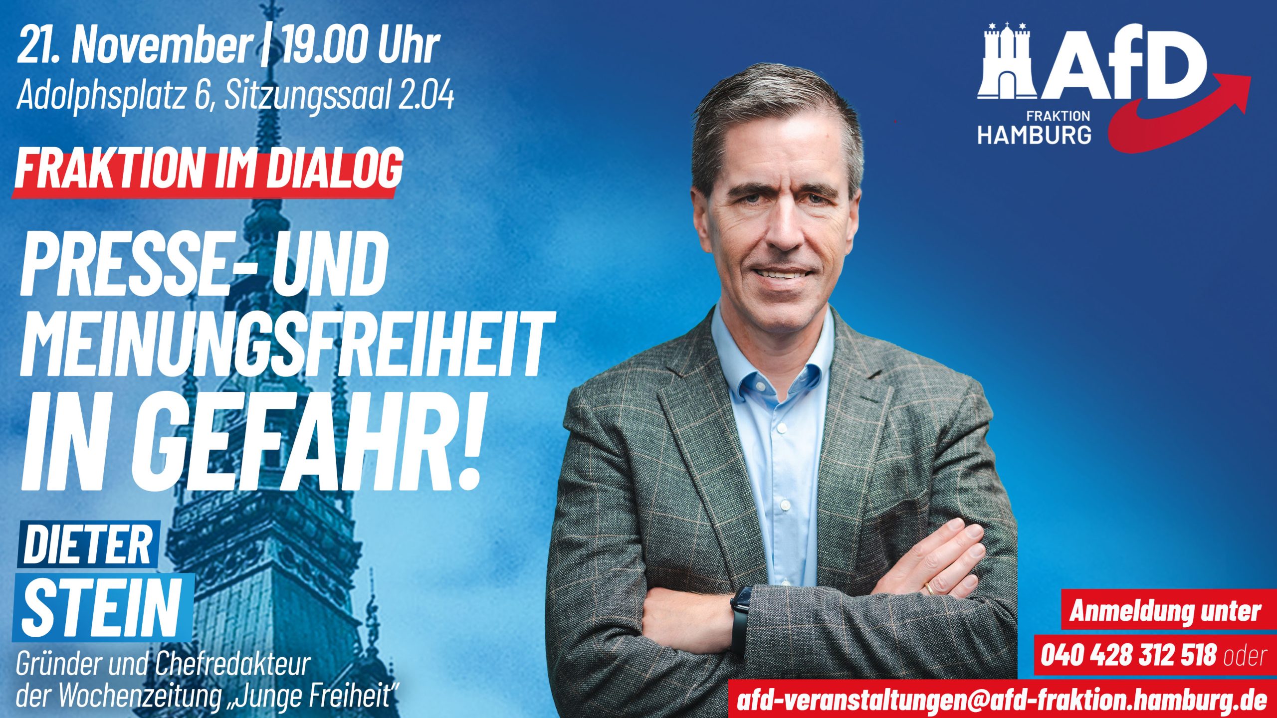 Am Freitag, 21. November, um 19 Uhr spricht Dieter Stein, Chefredakteur der Jungen Freiheit, in Hamburg zum Thema: